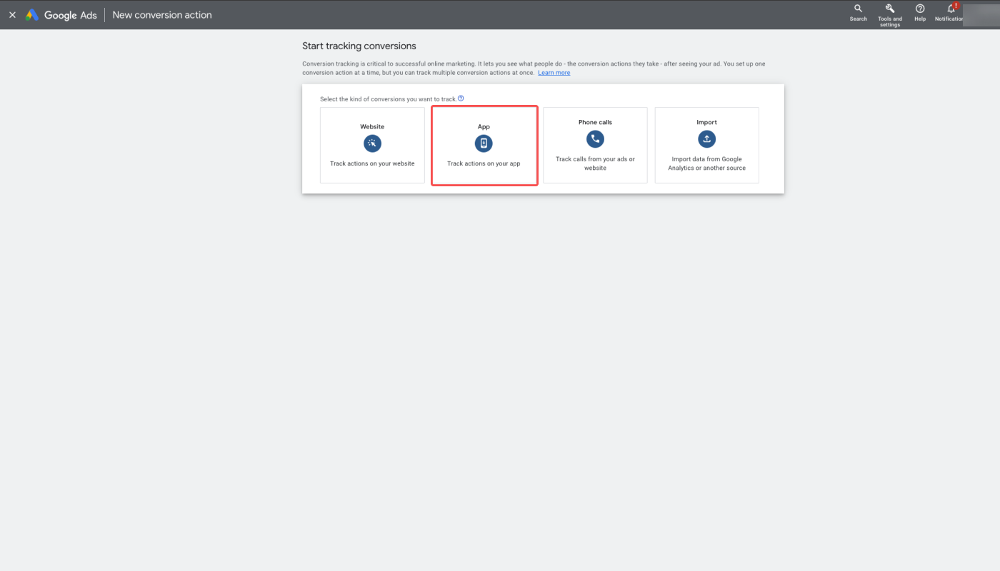 To measure conversions in Google Ads and view the data in Airbridge, you need to create conversion actions with Airbridge events in Google Ads. Make sure to complete all steps below.