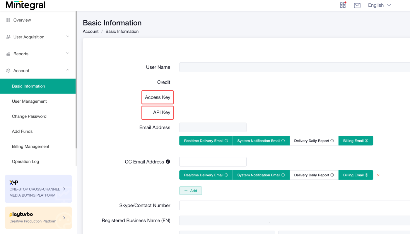 You need the following 2 credentials from the Mintegral dashboard.