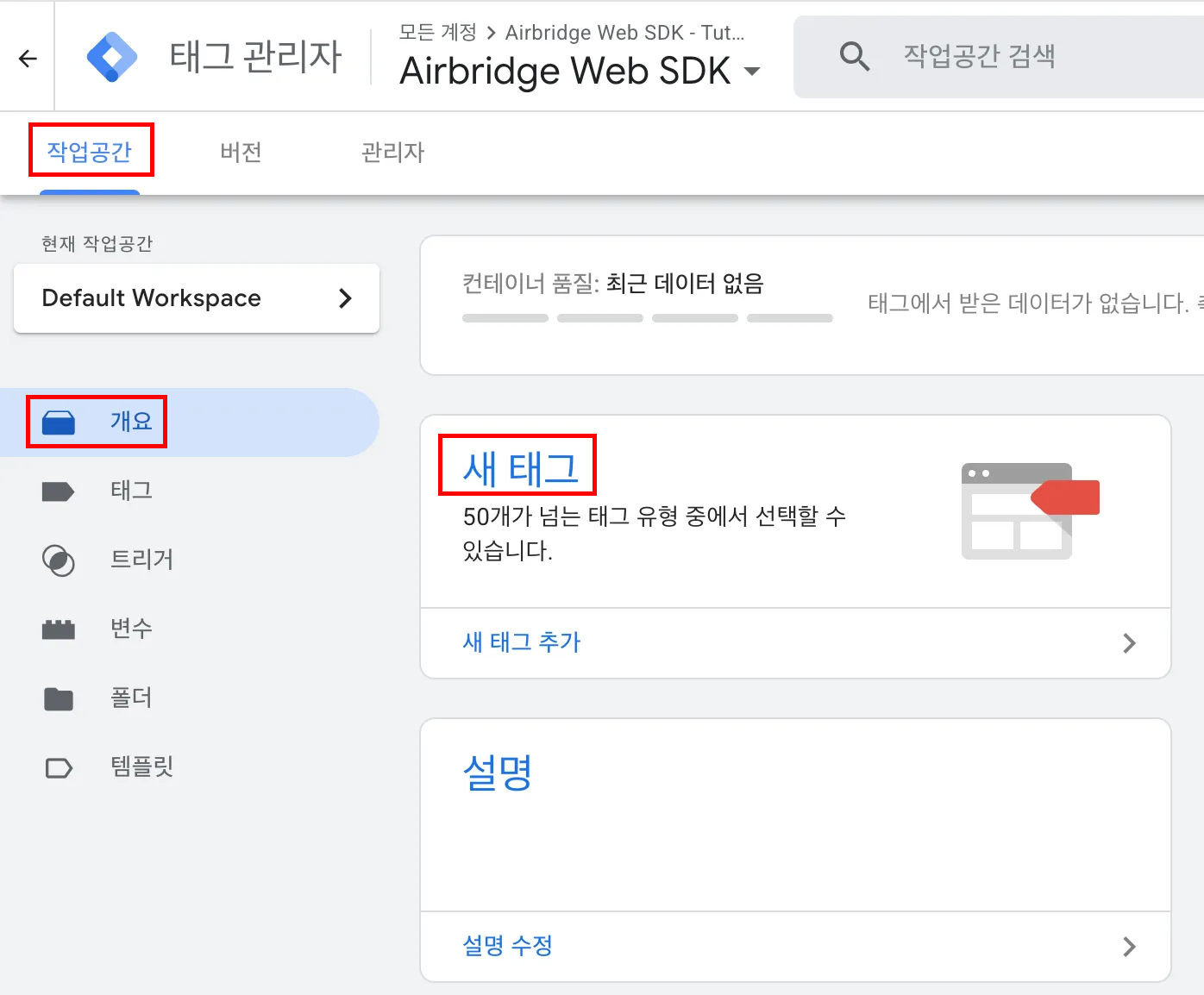 이 문서는 Google 태그 관리자를 통해 에어브릿지 Web SDK를 설치하는 방법에 대해 설명합니다.
