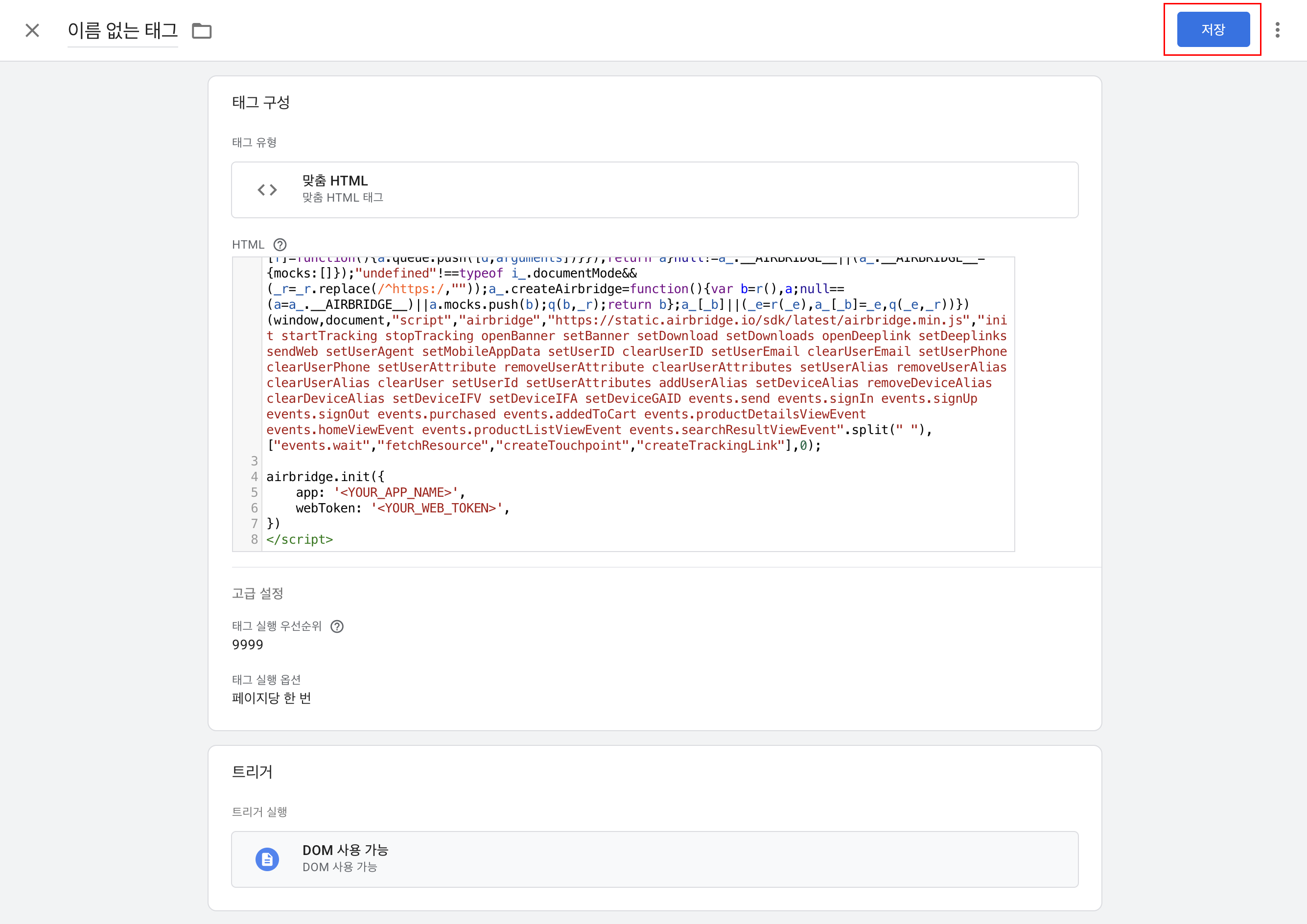 저장을 눌러 태그를 생성합니다.