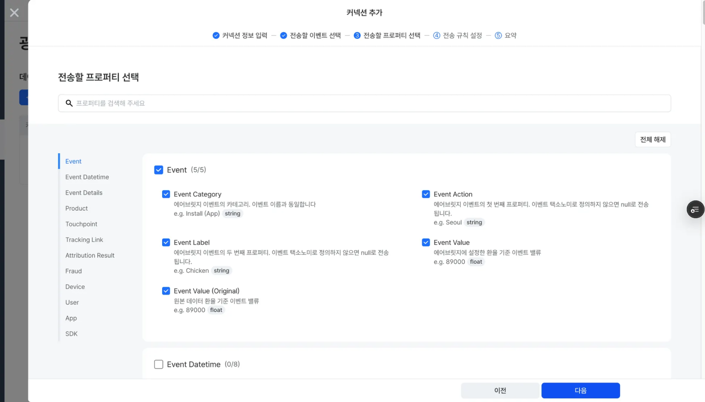 이벤트에 속한 프로퍼티 중 전송할 프로퍼티를 선택합니다.