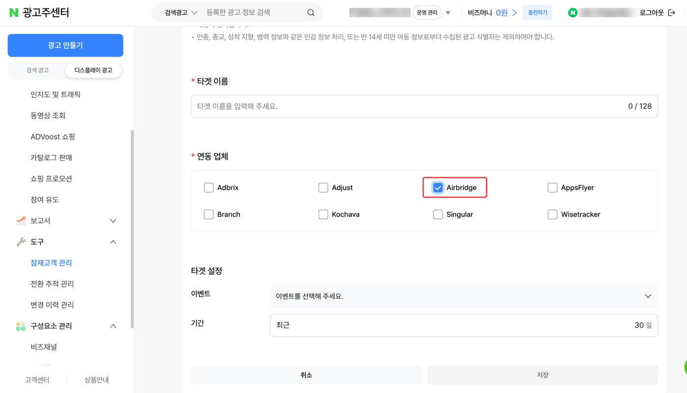에어브릿지에서 에어브릿지 이벤트를 네이버 성과형 디스플레이 광고로 전송할 수 있습니다.