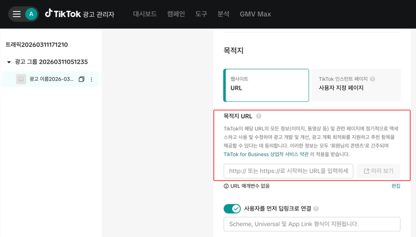 웹 캠페인 | tiktok | Tracking Link |